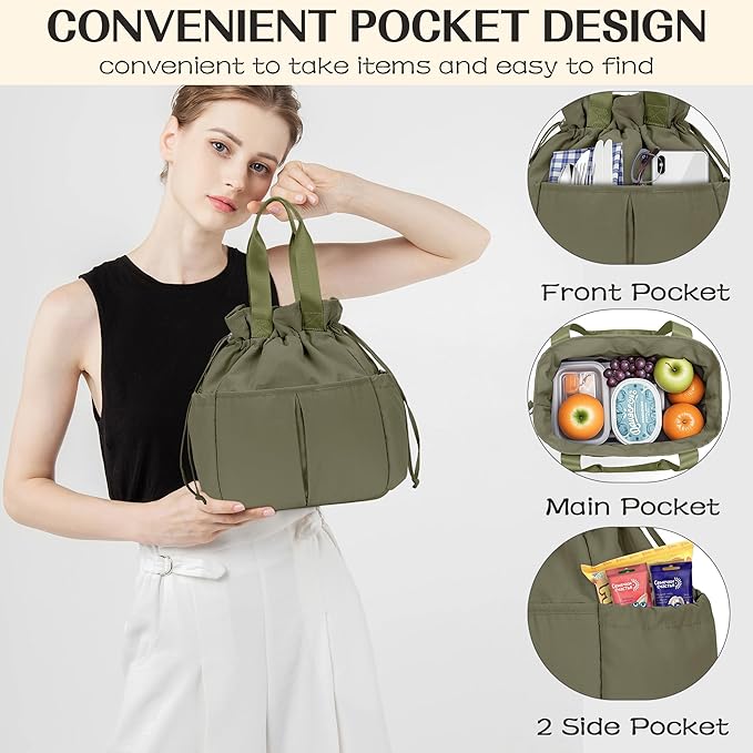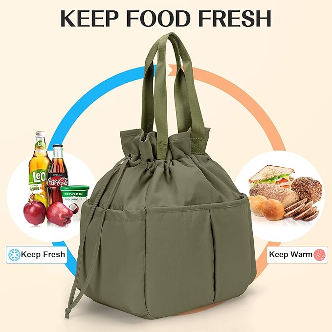 - Fashionable & Versatile: Featuring a simple and stylish design, it can be used not only as a lunch bag, but also as a thermal bag, picnic bag, food container, storage bag, or shopping bag for everyday use. It comes in a variety of colors to match your daily outfits and is suitable for various occasions such as the office, travel, picnics, camping, the beach, parties, and outdoor activities.