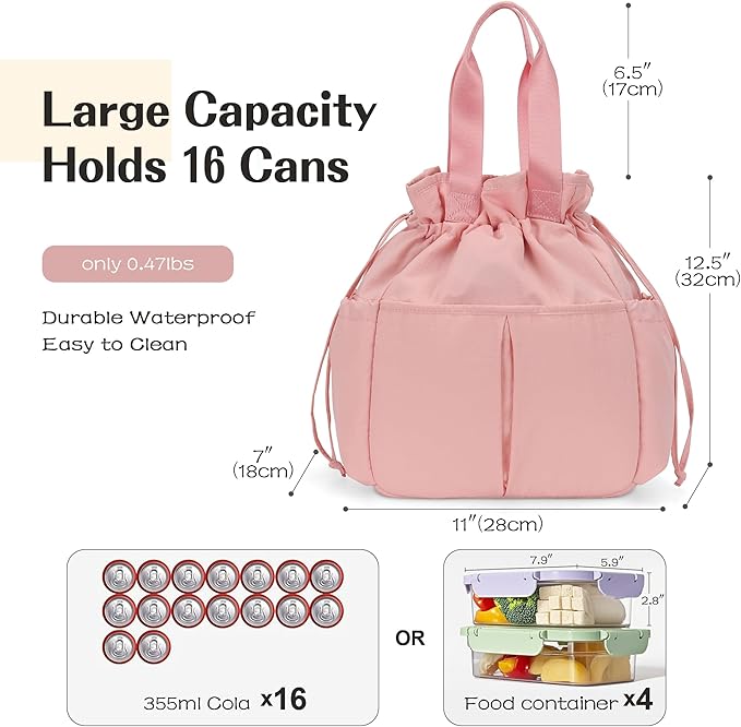 VS VOGSHOW Lunch Bag Women Cute Insulated Drawstring Lunch Bag 16 Cans Large Capacity Lunch Box for Work, Picnic, Outdoor (Pink)