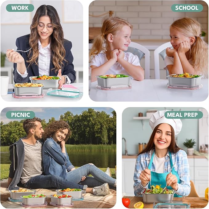- Safe & Portable: Compared to ordinary plastic meal prep containers, our stainless steel food storage containers with lids are non-toxic and long-lasting, won’t absorb food flavors, or stains, and make them easy to clean. Also, They are much lighter than glass containers, easy to carry. These containers are versatile and suitable for a variety of occasions and events. They are the perfect gift for you, your friends and family.