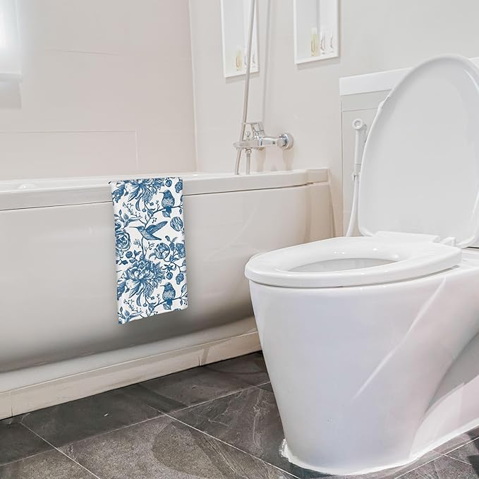 Blue Hydrangea Chinoiserie Floral Kitchen Towels Set of 2 - Summer Flowers Decorative Hand Towels for Bathroom, Blue Hydrangea Gifts, 16x24