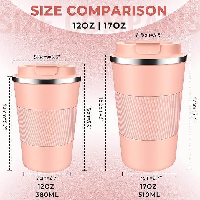 - Perfect Fit for Coffee Machine & Car Cupholder: Coffee travel mug available in 2 sizes-12oz or 17oz, both sizes fit under most coffee machine and car cup holders, available in multiple colors for home, office, on-the-go, or travel