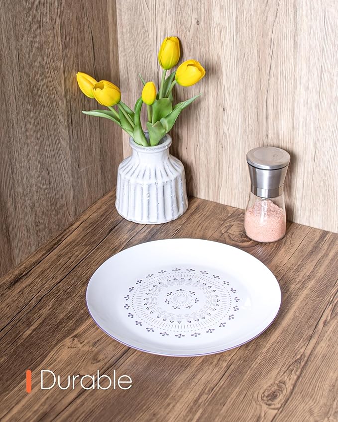 - Easy to Clean & Safe for Everyday Use – A slight odor or fine particles may appear when first opening due to the protective glass coating; simply rinse before use and enjoy odor-free, crystal-clear plates. Designed with a non-porous, ultra-hygienic surface, they require less detergent and energy to clean, and are dishwasher, microwave, and refrigerator safe