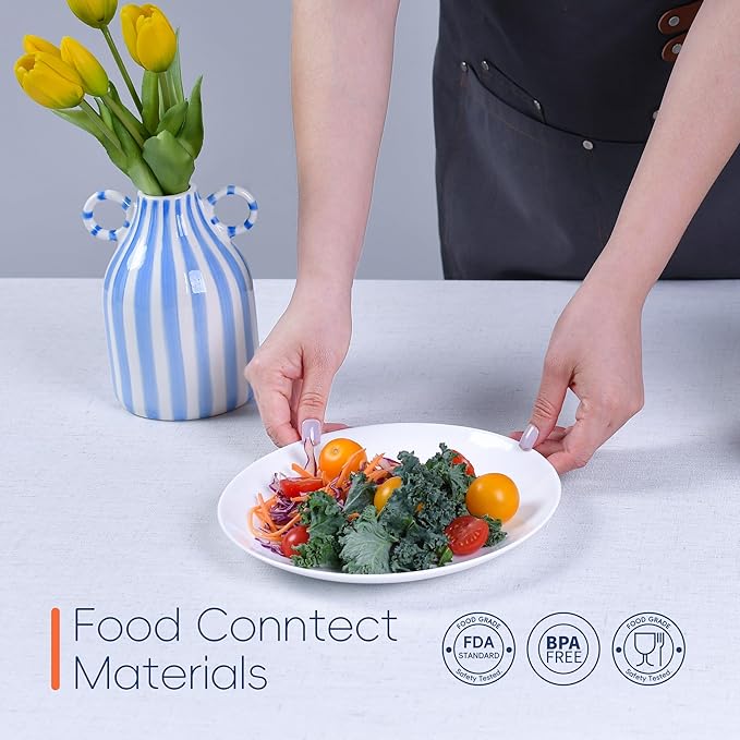 - Easy to Clean: Thanks to the non-porous ultra-hygienic surface, less detergent and energy is needed for cleaning; The dinner plates are dishwasher, microwave and refrigerator safe