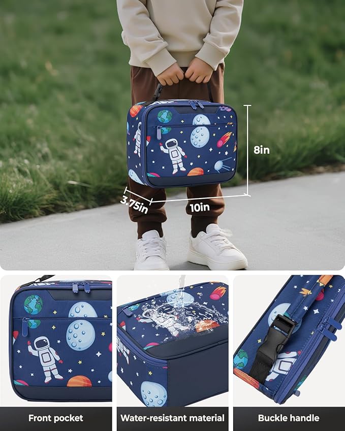 - Large-Capacity Insulated Lunch Bag for Kids & Adults:This lunch bag is designed with a spacious main compartment that easily holds lunch containers, snacks, drinks, and more—perfect for school, work, picnics, and travel. Compact and lightweight (10×3.75×8 inches), it fits neatly into backpacks or can be carried on its own.