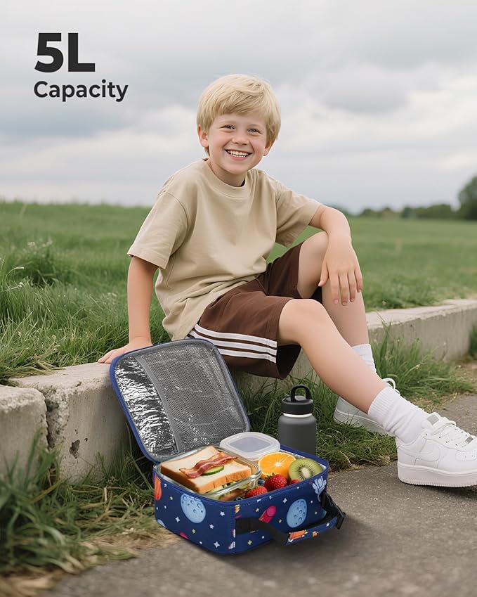 Tuwubi Kids Lunch Bag Insulated Lunch Box for Kids Small Lunch Bag for Boys/Girls Durable Lunchbox for School,Deep Blue Space 10-Can(5L)