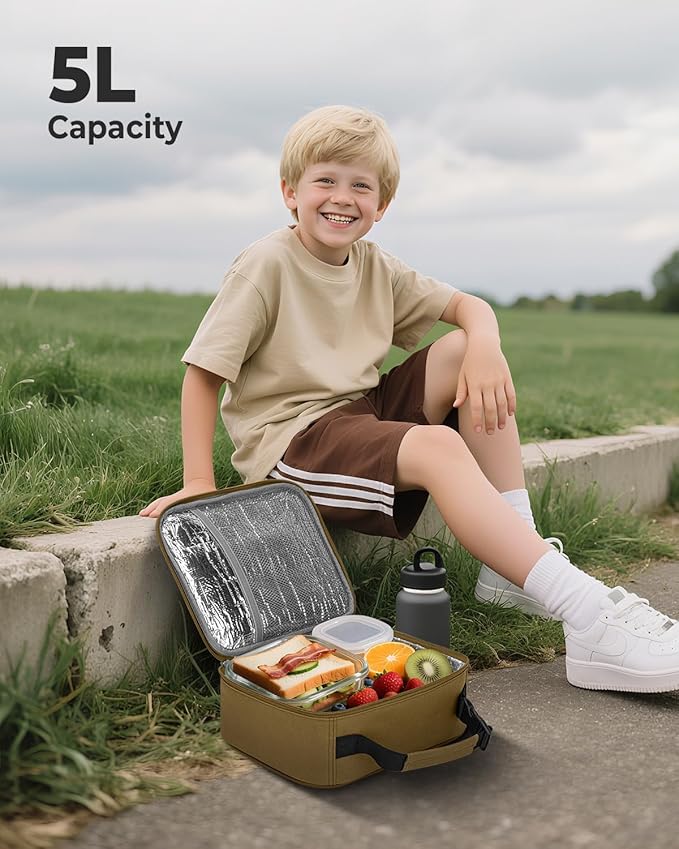 Tuwubi Kids Lunch Bag Insulated Lunch Box for Kids Small Lunch Bag for Boys/Girls Durable Lunchbox for School,Khaki 10-Can(5L)