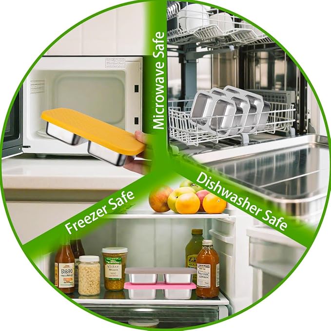 - 【EASY TO CLEAN】 – Made from high-quality stainless steel, these snackle box container are dishwasher safe and resist stains and odors, making cleanup quick and hassle-free. The smooth surfaces and removable lids prevent food residue from getting trapped. Whether you’re meal prepping, traveling, or using them daily, they provide a convenient and effortless cleaning experience.