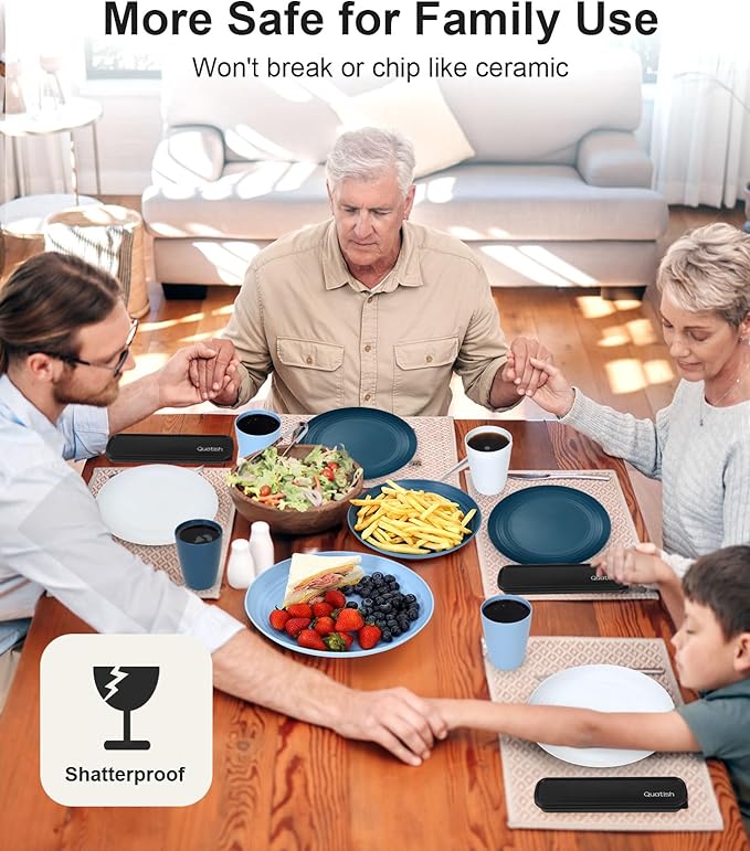 - Durable and Kid-Friendly: Nearly unbreakable, shatterproof plastic dinnerware set with raised edges, resistant to chipping, scratches, and wear-related damage. Ideal for camping, RVs, beach houses, and safe for toddlers and children