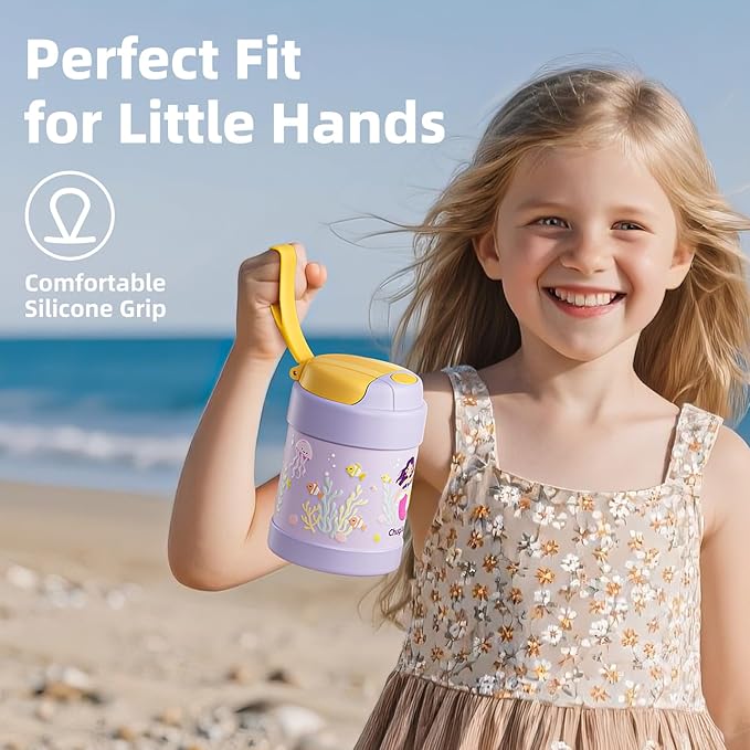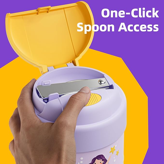 - Easy-to-Use Wide Mouth with Fun Designs: The wide mouth thermo for hot food kids is designed for little hands! Scooping food is effortless, encouraging independence. Cleaning is a breeze with no hard corners. Vibrant cartoon designs turn lunchtime into a fun ritual with this kids container thermo for hot food. Watch them reach for their thermo kids food jar again and again!