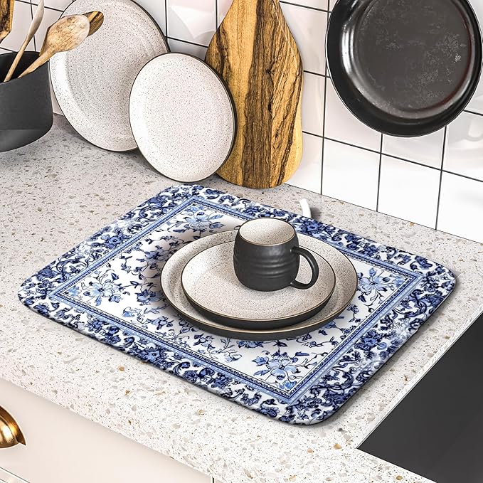 - 【Protect Tableware】Place your dishes on it or under dish racks, the bohemian flower dish mat prevents bowls, glassware, and more tablewares from being scratched or worn, can be used as dish drying mat, sink mat, dishes drainer mats to keep the countertop dry and tidy.