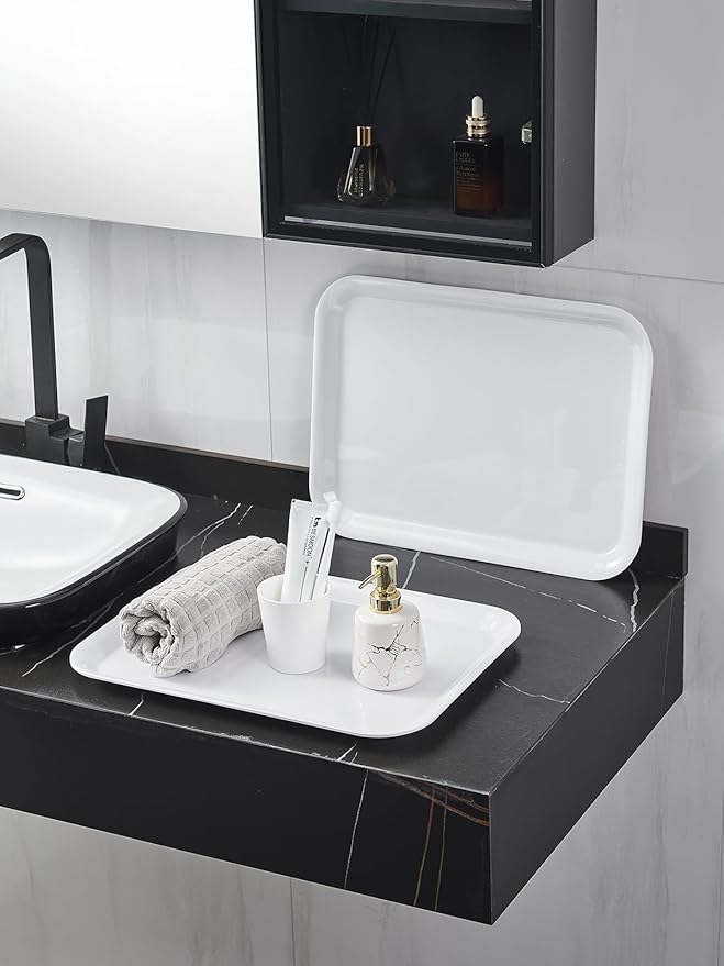 Blue Boat 17" x 12.5" Rectangular Serving Trays Set of 2 White, Melamine Serving Platter, Light Weight Easy to Clean Sturdy Stackable BPA-Free Dishwasher Safe