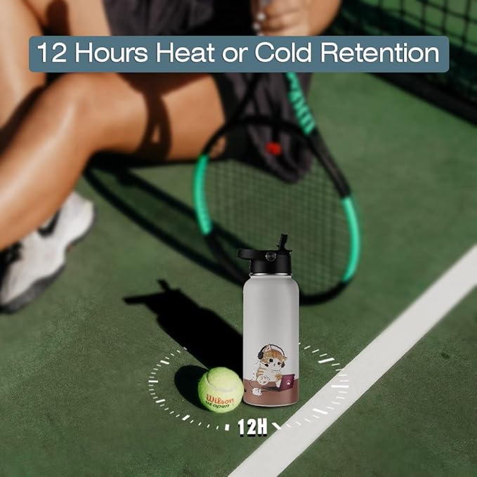 Funkrin Insulated Water Bottle with Straw Lid & Spout Lid, 32oz Personalized Vacuum Stainless Steel Travel Mug, Leak Proof Double Wall Bottle for Hot & Cold Beverages