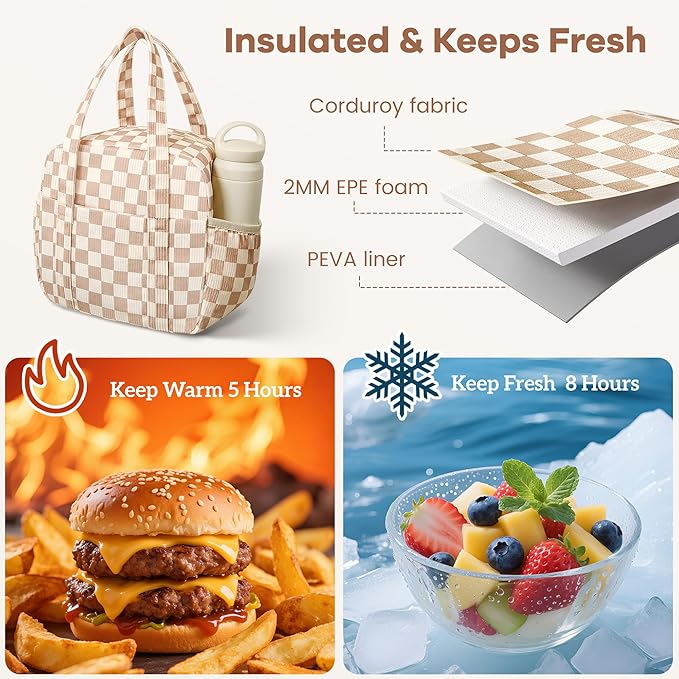 - ใ๐๐ญ๐ฒ๐ฅ๐ข๐ฌ๐ก & ๐๐ข๐ ๐ก๐ญ๐ฐ๐๐ข๐ ๐ก๐ญใThis insulated lunch bag blends retro charm with everyday function. The textured corduroy adds a fashionable touch, while the lightweight design (only 0.6 lb.) makes it effortless to carry wherever you go.