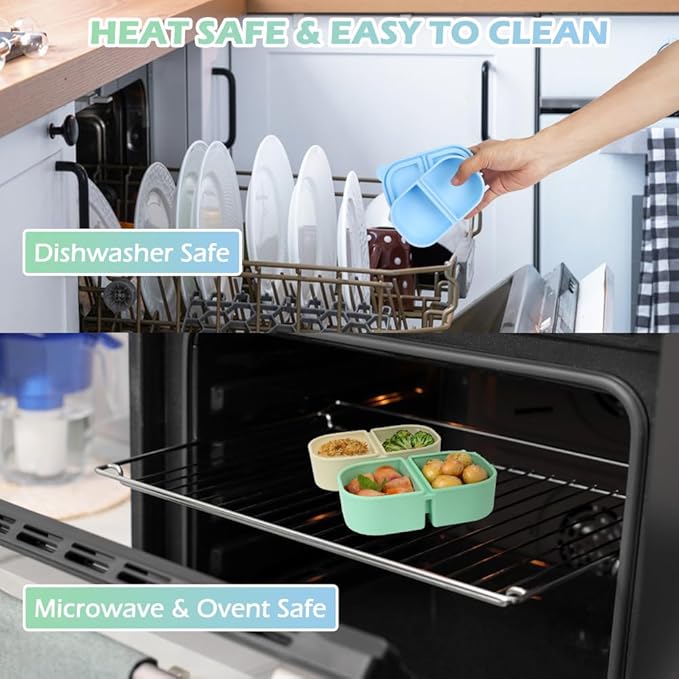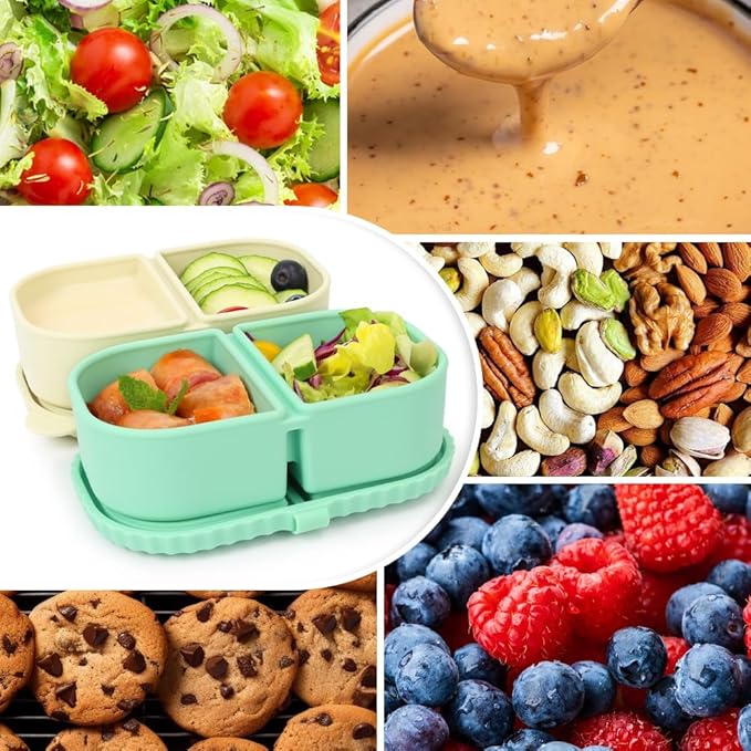 - Double Compartments for Smart Separation: Each silicone snack container features two compartments to keep food items separate and fresh. Great for pairing fruits and yogurt, veggies and dip, or any snack combo withoutmixing flavors.