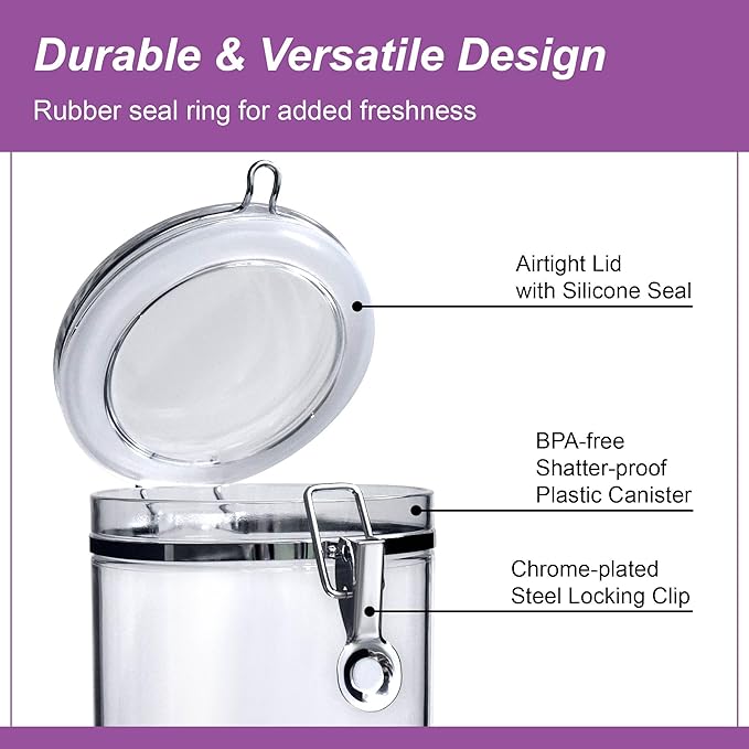 - [WORRIES OUT] Made of food-grade high-quality acrylic plastic. BPA-free and lead-free. Shatter-proof and break-resistant. With its premium material and sturdy construction, the canister is safe and durable for your everyday use.