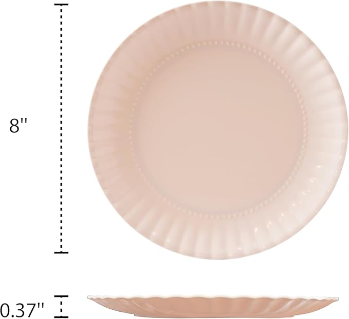- Elegant Fluted Design: This plate set features a soft blush tone with pleated edges, offering a ceramic-like look in durable, slim melamine — perfect for both everyday meals and special occasions.