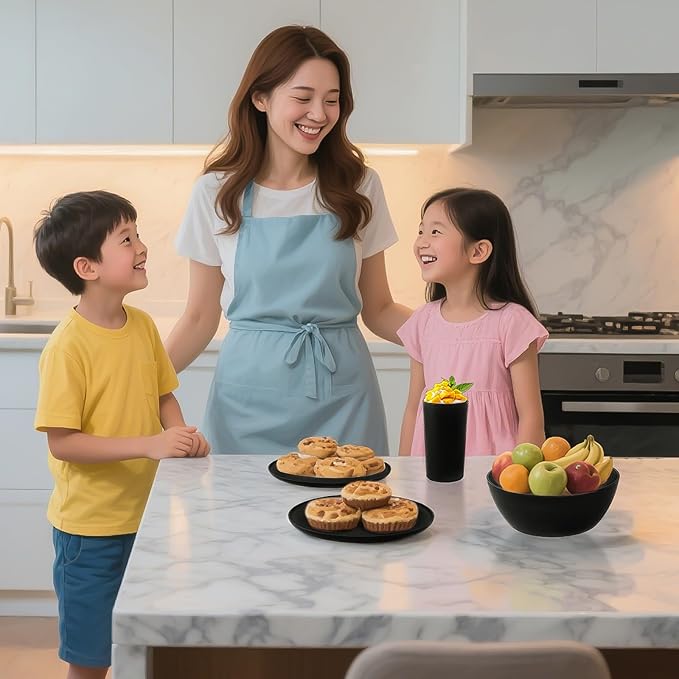 - Practical kitchen set: Engineered for practicality, this plastic plates and bowls set is lightweight for kids to hold easily and this dinnerware sets feature stackable plates, bowls, and cups that nest neatly, saving cabinet and cupboard space.