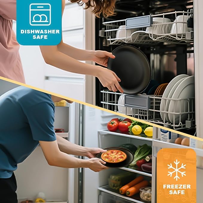 - Dishwasher Safe: This kitchen plate and bowl set is more durable than ceramic or glass, won’t retain grease, and is easily cleaned by hand or in the dishwasher.