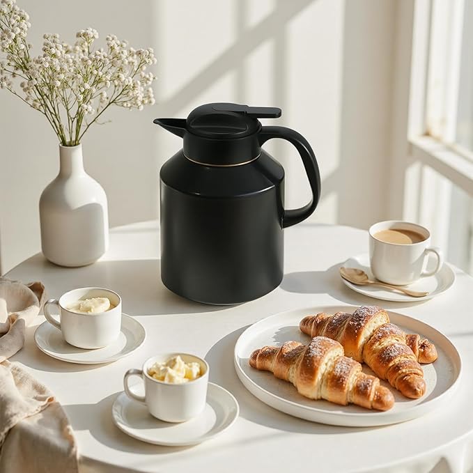 - USER FRIENDLY: The Thermal coffee pot use the single hand pouring design can leaves your hands free.