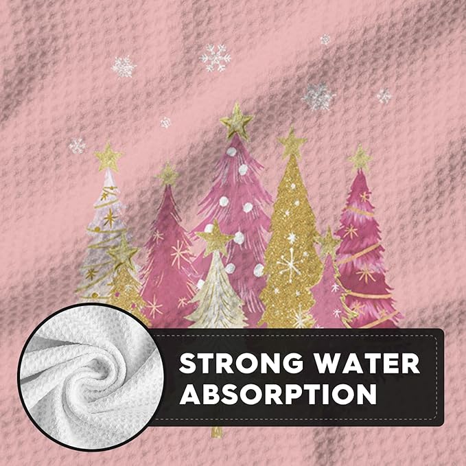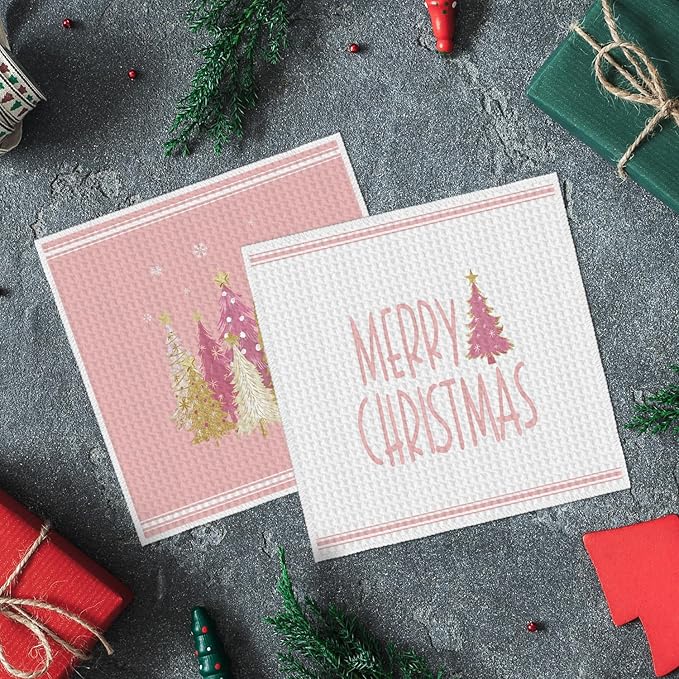 Artoid Mode Pink Star Xmas Tree Merry Christmas Kitchen Dish Cloths, 12x12 Inch Quick Dry Microfiber Dishcloths for Kitchen Dish Rags Set of 2