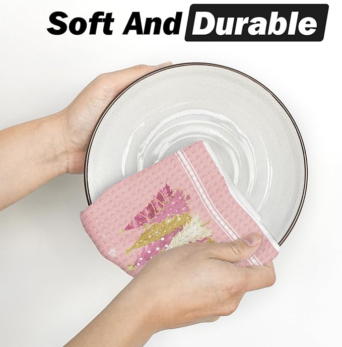 Artoid Mode Pink Star Xmas Tree Merry Christmas Kitchen Towels, 18x26 Inch Quick Dry Microfiber Cloth Dish Towels for Kitchen Drying Set of 2