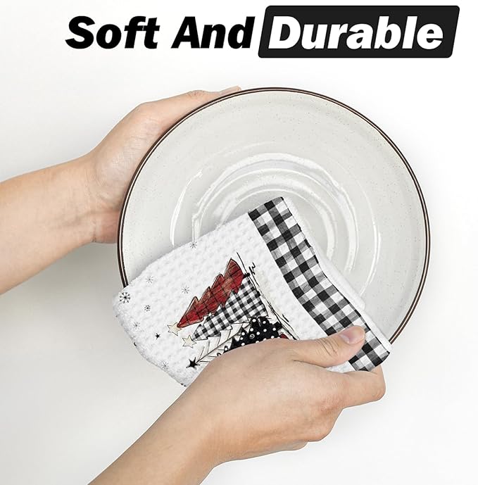 Artoid Mode Black Buffalo Plaid Xmas Tree Christmas Bar Kitchen Towels, 12x24 Inch Quick Dry Microfiber Cloth Dish Towels for Kitchen Drying Set of 2