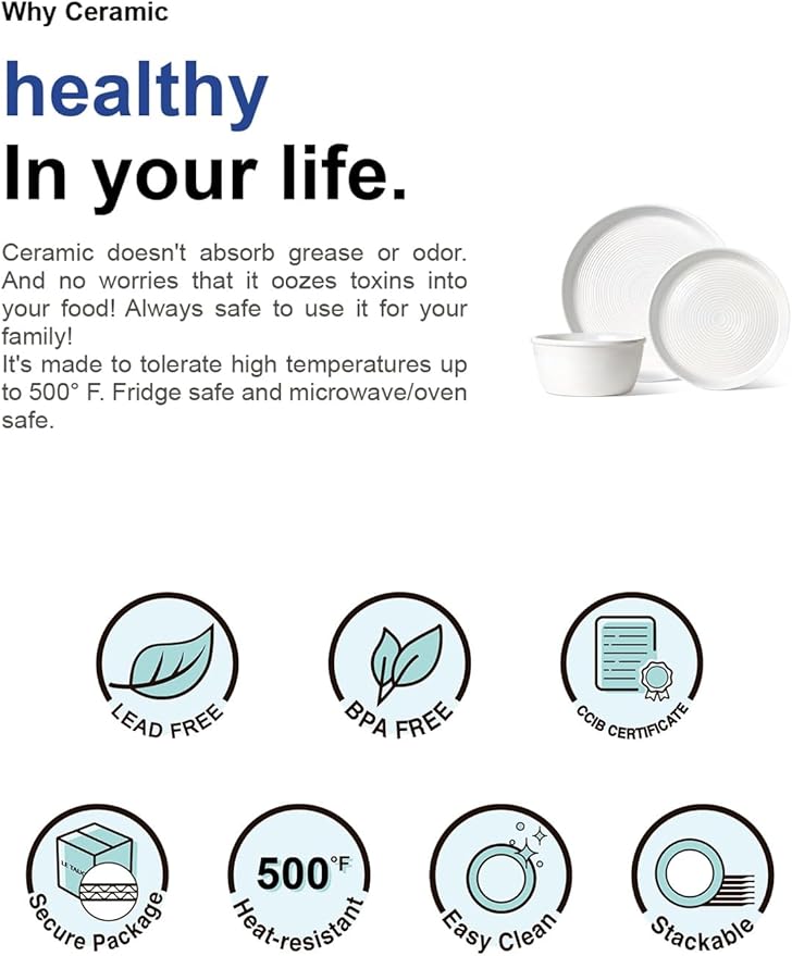 - Durable and Food-Safe Ceramic: High-fired stoneware resists chips and daily wear; protective glaze is lead and cadmium free and safe for food contact, keeping meals pure; strong enough for daily service and easy care with dishwasher and microwave use
