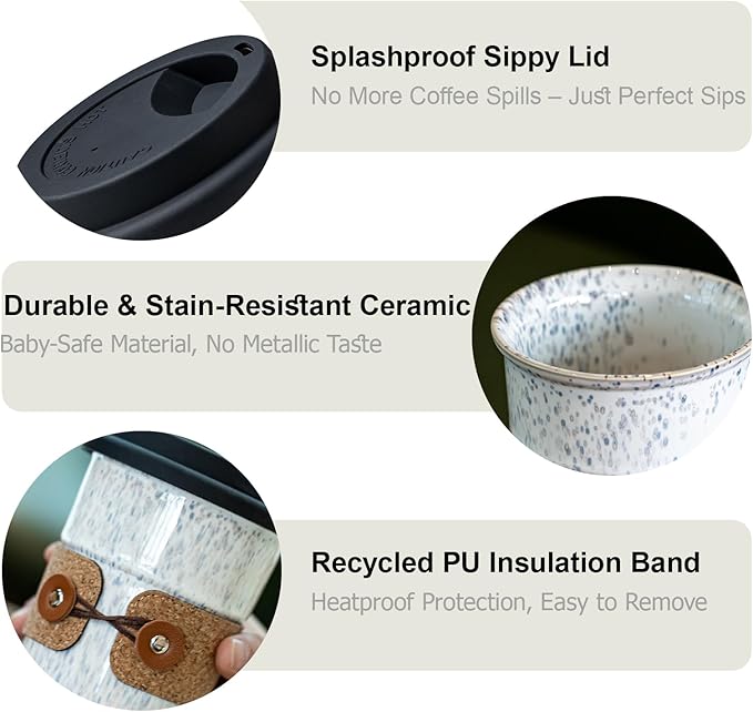 - MICROWAVE & DISHWASHER SAFE - These durable mugs are both microwave and dishwasher safe. The ceramic coffee mug boasts a scratch-resistant exterior, while the removable band simplifies cleaning these coffee cups with lids.