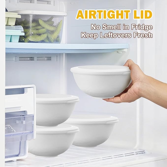 Wheat Straw Bowls Set 40 OZ, Unbreakable Bowls with Dust-Proof Lids Set of 4, Microwave & Dishwasher Safe, Alternative Reusable Plastic Bowl for Cereal, Soup, Salad and Ramen, White