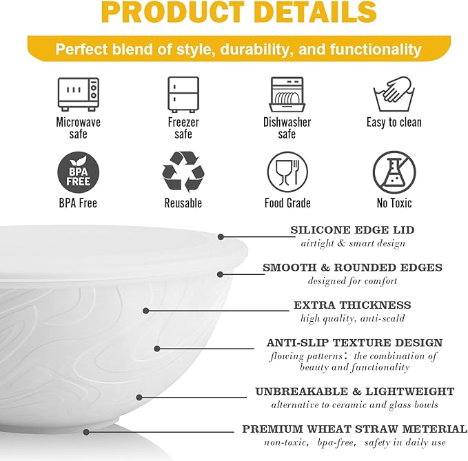 - Premium Wheat Straw Material: Crafted from wheat straw fiber and food-grade PP, our bowls are BPA-free, non-toxic and built to last. Reusable and designed with your family's health in mind - safety and durability in daily use.