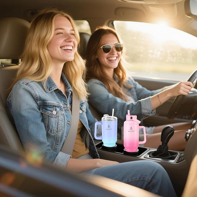- Fit Your Life: The 40oz insulated tumbler/water bottle with handle and lid can be used as a travel coffee cup or water tumbler, its enough for both daily use or travels around the world with you, it perfect fits almost car cup holders. Designed with non-sweat design, the outer layer is beautiful power coating which can keep your tumbler cup dry and clean when holding