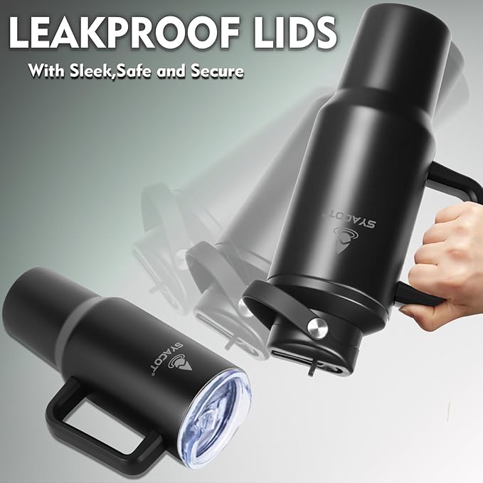 - Fit Your Life: The 40oz insulated tumbler/water bottle with handle and lid can be used as a travel coffee cup or water tumbler, its enough for both daily use or travels around the world with you, it perfect fits almost car cup holders. Designed with non-sweat design, the outer layer is beautiful power coating which can keep your tumbler cup dry and clean when holding