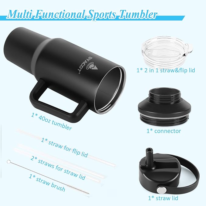 40 oz Tumbler with Handle and Straw or Convert to 40 oz Insulated Water Bottle Fits in Cup Holder. Stainless Steel Metal Water Flask with 2 Lids for Travel,Camping,Gym Sports Coffee Mug Thermal Cup