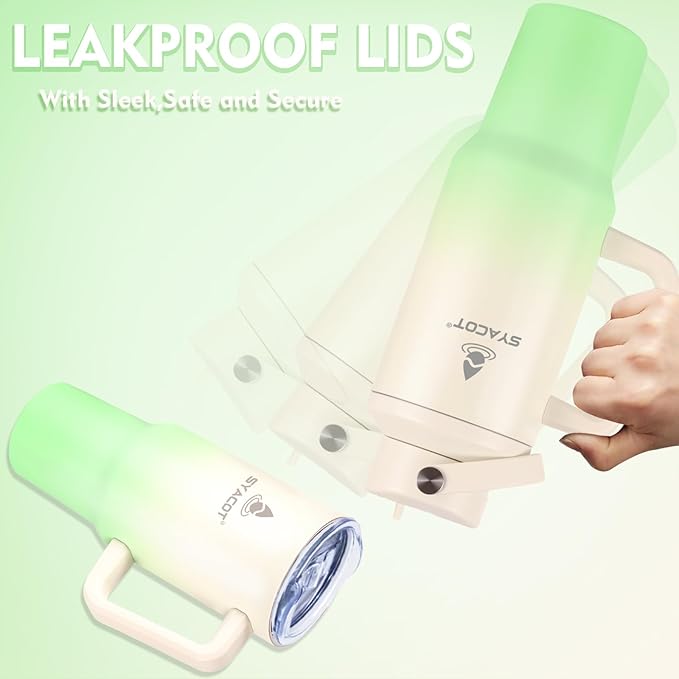 - Fit Your Life: The 40oz insulated tumbler/water bottle with handle and lid can be used as a travel coffee cup or water tumbler, its enough for both daily use or travels around the world with you, it perfect fits almost car cup holders. Designed with non-sweat design, the outer layer is beautiful power coating which can keep your tumbler cup dry and clean when holding