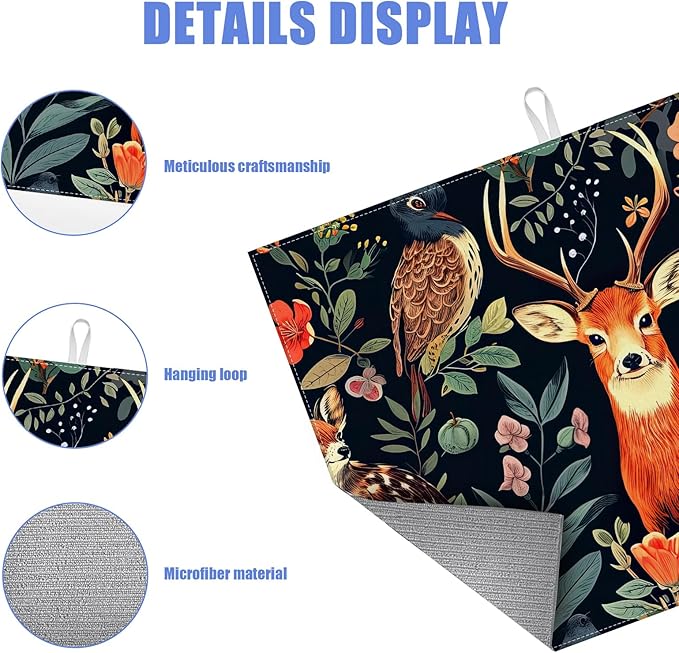 Vintage Deer Dish Drying Mat for Kitchen Counter Wild Animals Drying Pad Absorbent Reversible Dish Drainer Rack Mats Draining Pad 18"x24"Inch