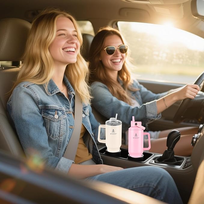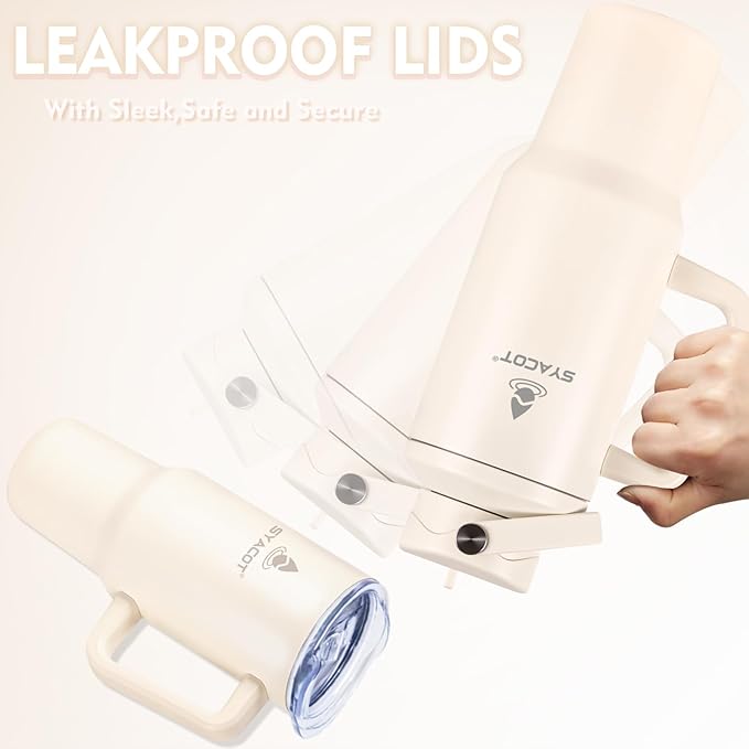 - Fit Your Life: The 40oz insulated tumbler/water bottle with handle and lid can be used as a travel coffee cup or water tumbler, its enough for both daily use or travels around the world with you, it perfect fits almost car cup holders. Designed with non-sweat design, the outer layer is beautiful power coating which can keep your tumbler cup dry and clean when holding