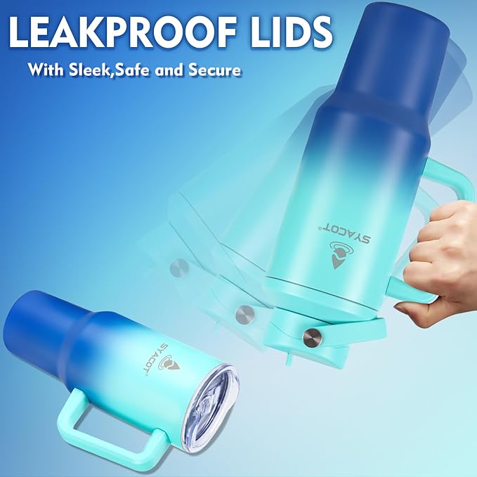 - Fit Your Life: The 40oz insulated tumbler/water bottle with handle and lid can be used as a travel coffee cup or water tumbler, its enough for both daily use or travels around the world with you, it perfect fits almost car cup holders. Designed with non-sweat design, the outer layer is beautiful power coating which can keep your tumbler cup dry and clean when holding