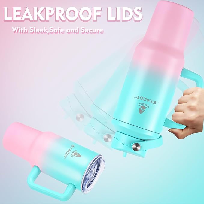 - 2 in 1 Bottle/Tumbler: Yes, it's here,The multifunctional water bottle/tumbler has really arrived. It is a combination of the advantages of tumbler and water bottle. Use the functionality of the 40 oz tumbler in the office, home gatherings, leisure and entertainment. You would also use the function of a 40 oz water bottle for travel, outdoor sports, beach, camping, and hiking. Especially driving and road trip(The cup is suitable for standard car cup holders).The insulated tumbler/bottle is a great gift for any occasion