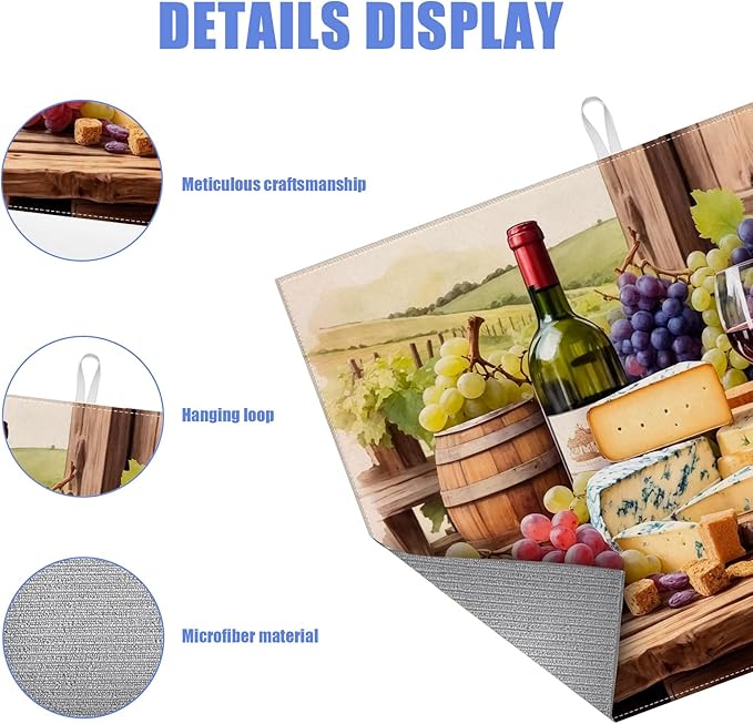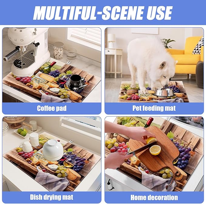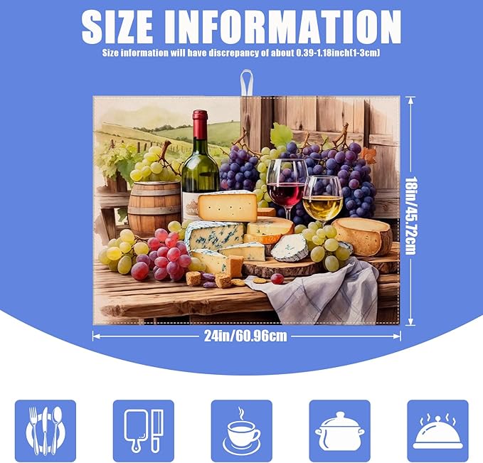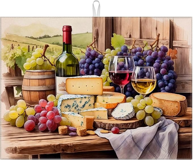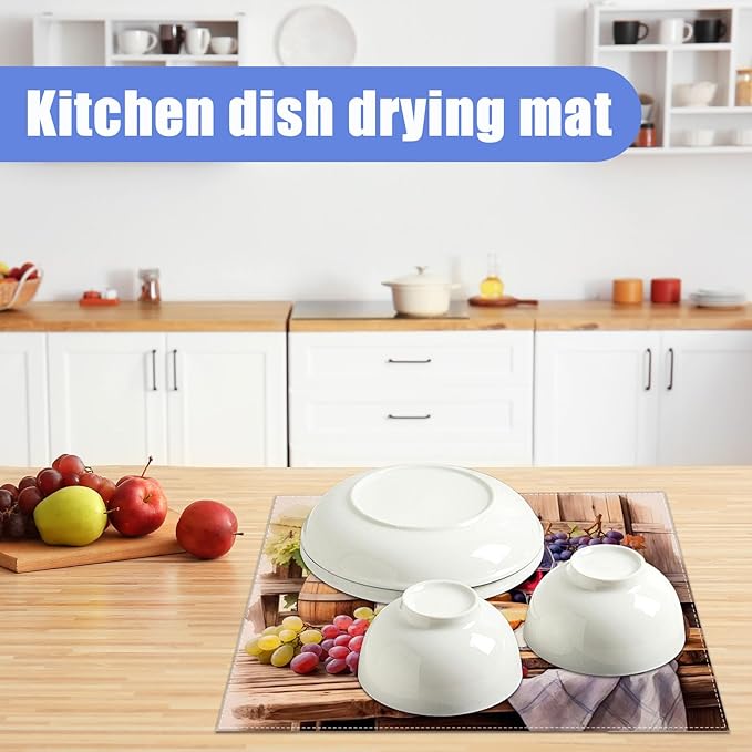 Vintage Red Wine Grape Dish Drying Mat for Kitchen Counter Drying Pad Absorbent Reversible Dish Drainer Rack Mats Draining Pad 18"x24"Inch