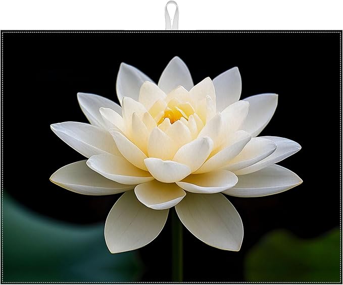 White Louts Flower Dish Drying Mat for Kitchen Counter Floral Drying Pad Absorbent Reversible Dish Drainer Rack Mats Draining Pad 18"x24"Inch