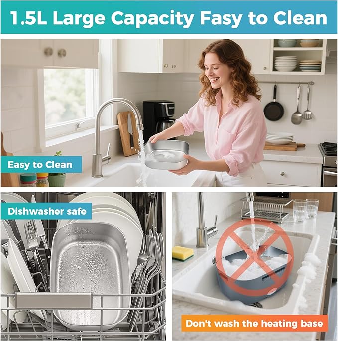 - ✨【Easy to Clean】:The detachable stainless - steel container,fork,spoon,and plastic compartments of this heating lunch box are dishwasher - safe,saving you time and effort in your busy life.PS:Please keep the heating base away from water to prevent short - circuits.Wipe it with neutral soapy water