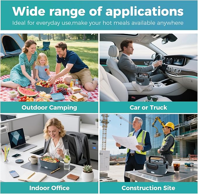 - 💡【3-in-1 Voltage Adaptability】:Featuring 110V (home/office),12V (car),and 24V (truck) compatibility, this versatile lunch warmer seamlessly transitions between indoor and outdoor use.Plug directly into your vehicle’s cigarette lighter or standard wall outlet for hassle-free heating during commutes,road trips,or long workdays