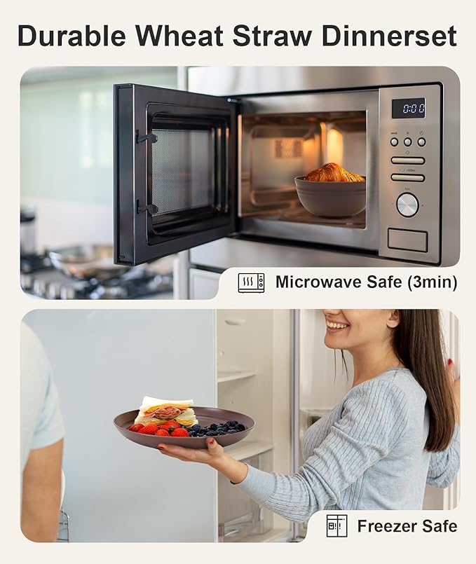 - Dishwasher and Microwave Safe: These plates and bowls sets can also go in the fridge or freezer. Offer convenient cleanup and reheating, making them ideal for everyday use