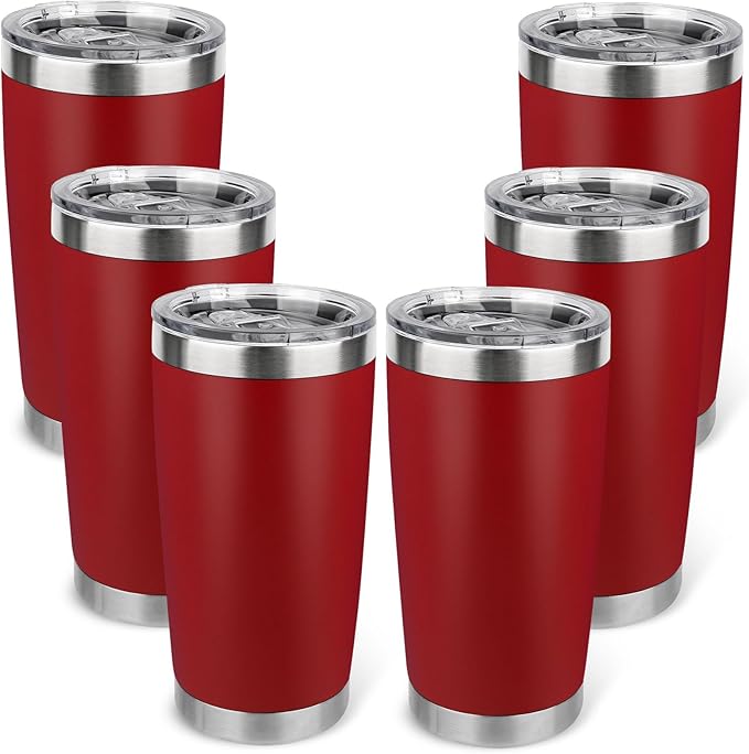 20oz Stainless Steel Tumbler Bulk with Lid, Travel Mug - Double Wall Vacuum Powder Coated Cup - Red, 6 Pack