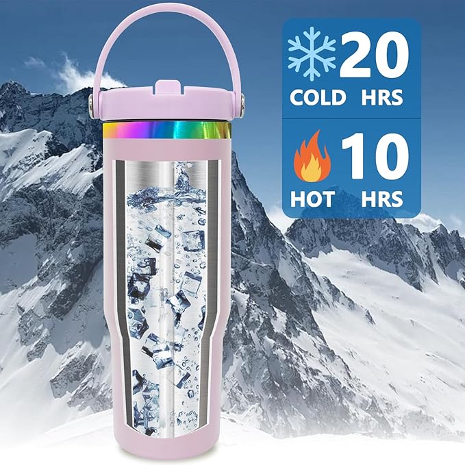 - Keeps Cold for Long Time: This 30 oz insulated tumbler with handle is constructed with double-wall vacuum insulation and premium 18/8 food grade stainless steel, BPA-free, keeping beverages cool for over 20 hours, and hot for up to 10 hours, no matter the climate or conditions.