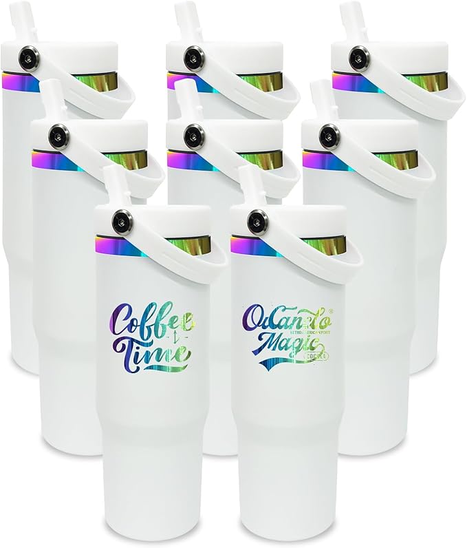 30 oz Tumbler Bulk with Handle and Straw, Vacuum Insulated Tumblers with Flip Straw and Top Handle, Leakproof Powder Coated Tumbler, Stainless Steel Travel Mug for Coffee Water (White, 8 Pack)