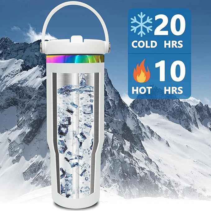 - Keeps Cold for Long Time: This 30 oz insulated tumbler with handle is constructed with double-wall vacuum insulation and premium 18/8 food grade stainless steel, BPA-free, keeping beverages cool for over 20 hours, and hot for up to 10 hours, no matter the climate or conditions.