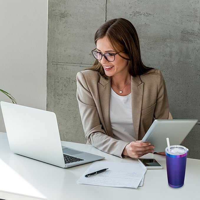 - Colored Powder Coated Tumbler: Different from other stainless steel tumblers, our tumblers are blue-purple plated, they are perfect for laser engraving, vinyl decals or color painting; the blue-purple underneath will be revealed after laser engraving. You can create your own personalized tumbler with your own art form