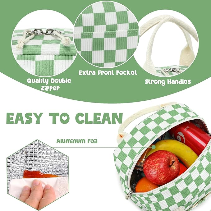 - Durable and Waterproof:The lunch cooler bag is made of sturdy waterproof fabric and precision linear,leak-proof, thickened anti-collision, waterproof, easy to clean,keep cool and fresh and long-lasting insulation.The lunch tote handle has beenreinforced metal zippers have been used to ensure the lunch kit's maximum durability which is easy to clean.Two ways zipper for easy access.