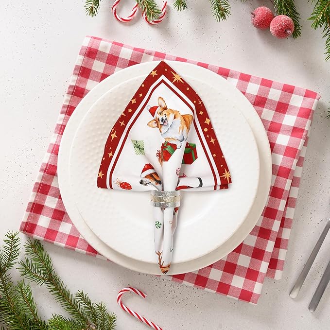 Christmas Dog Napkins, 18×18 Inch Dinner Cloth Napkins Set of 6, Washable Cotton Soft Absorbent Square Table Top Decoration for Dining Kitchen Party Wedding